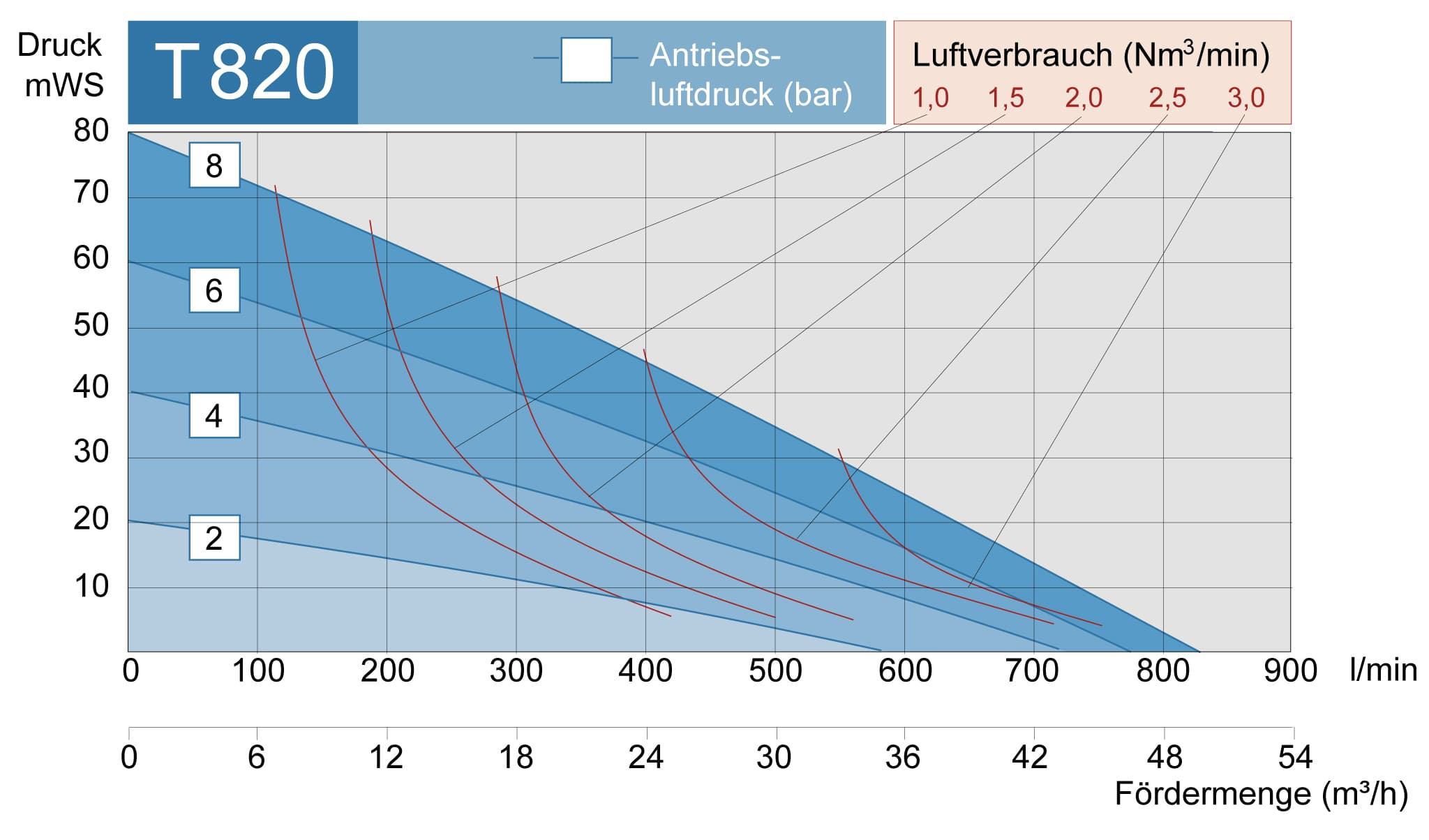 • Max. Förderdruck 8 bar bei 8 bar Druckluft